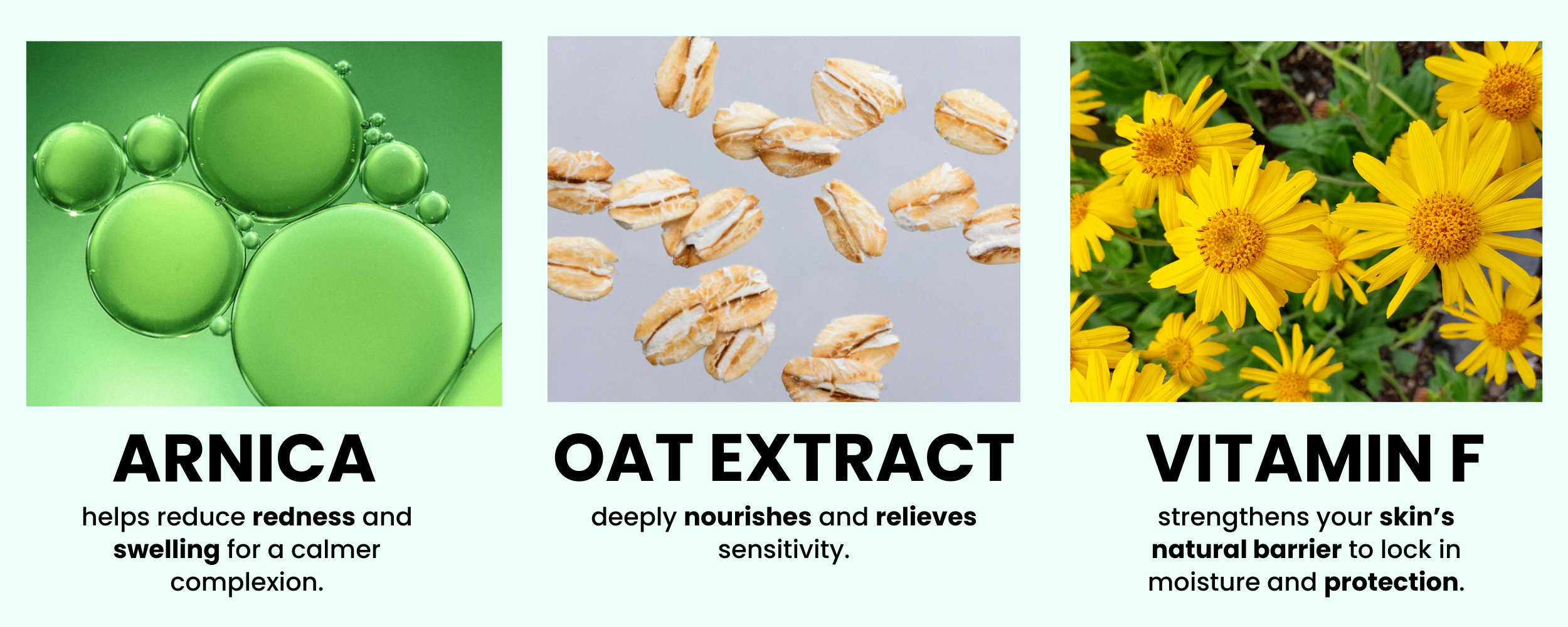 Wonder Relief is a soothing cream formulated with arnica, oat, and vitamin F to calm irritation, reduce visible redness, and comfort sensitive skin. It helps restore balance, strengthen the skin barrier, and leave your skin feeling soft, smooth, and healthy.